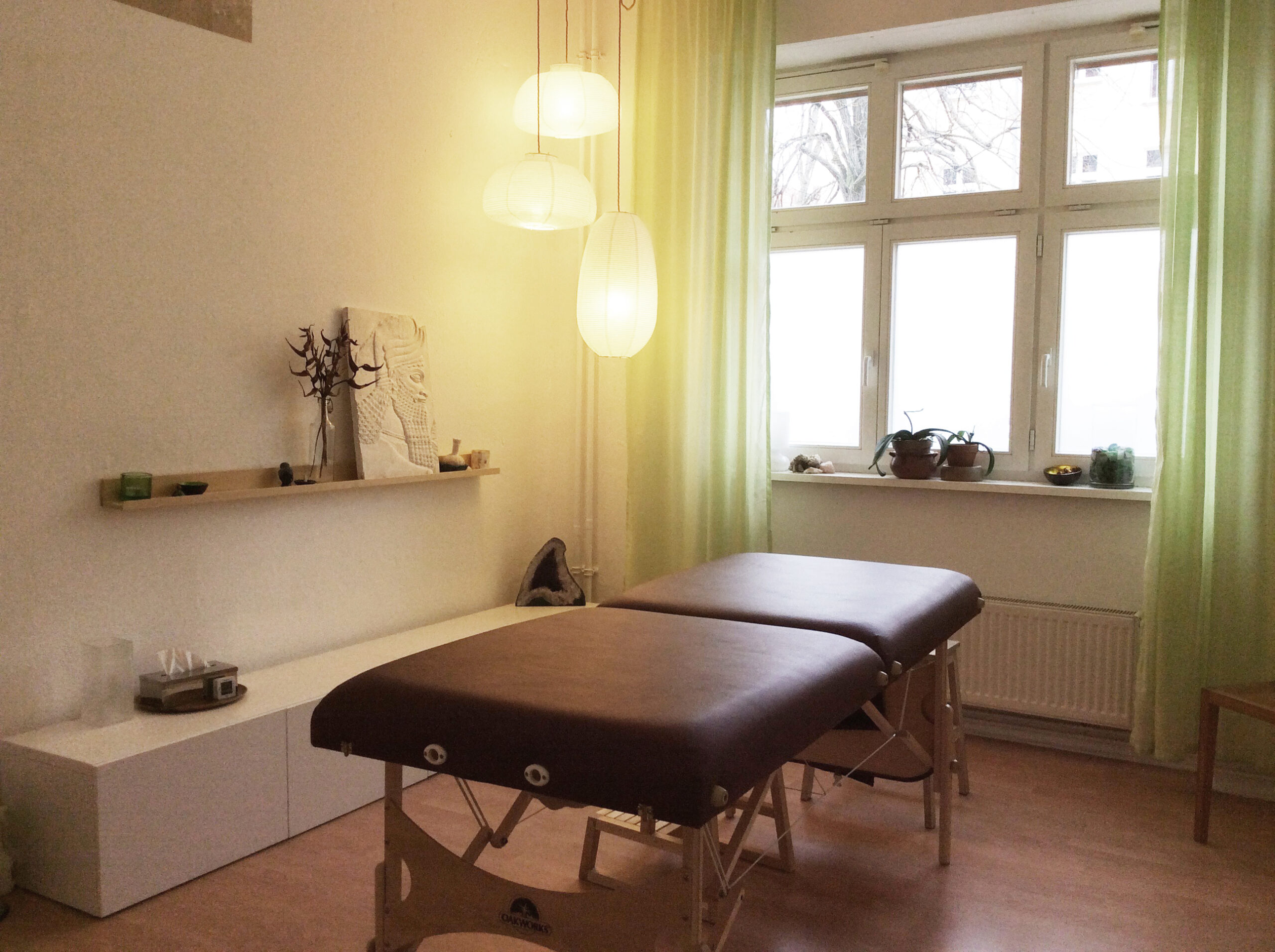 Es besteht auch die Möglichkeit auf einer klappbaren Massagebank aus Holz zu arbeiten.